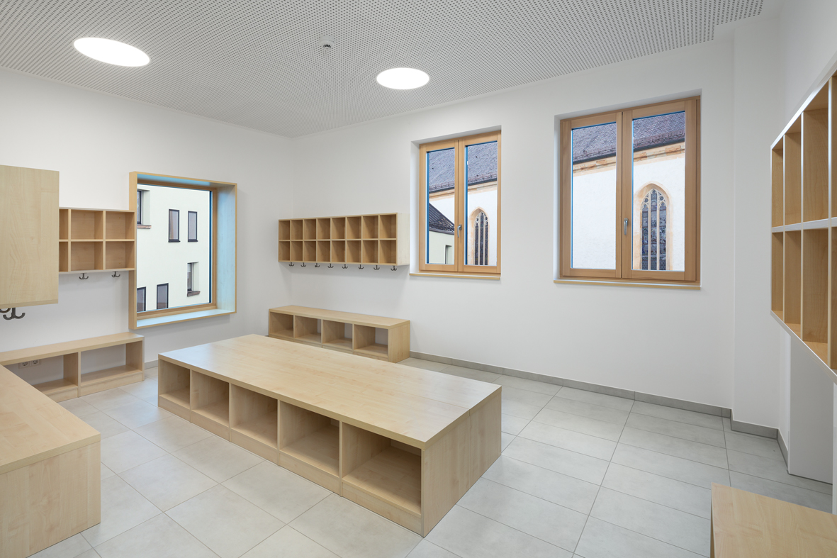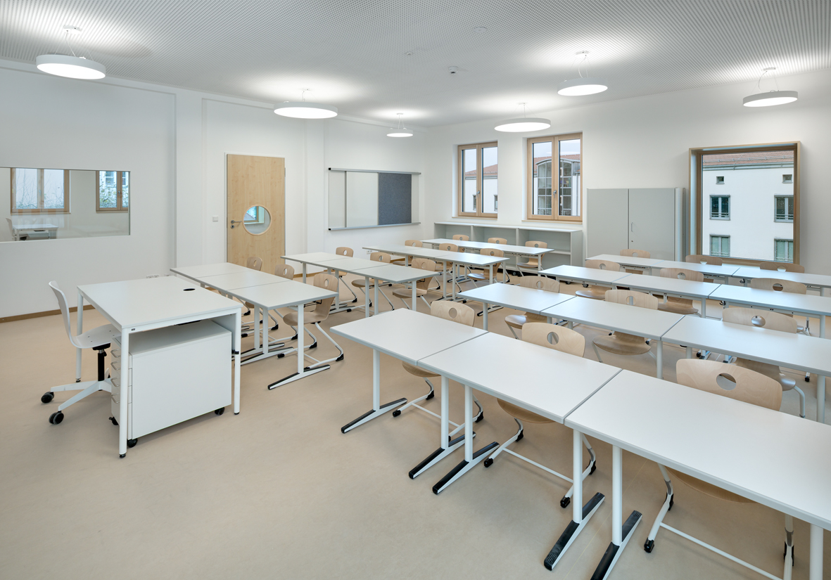 Das gesamte Archiv wird gemäß DIN 18040 barrierefrei kernsaniert. Im Erdgeschoss entstehen zwei Archivräume, die großzügig mit Rollregalen ausgestattet werden. Im ersten Obergeschoss werden Büros für die Angestellten eingerichtet sowie ein großer Ausstellungsraum, der für Präsentationen und Führungen genutzt werden kann. Der Dachraum bietet zusätzliche Staufläche für das Archiv. Der Neubau der Gerhardinger Schule und die Sanierung des Stadtarchivs werden im Rahmen eines einzigen Auftrags durchgeführt.