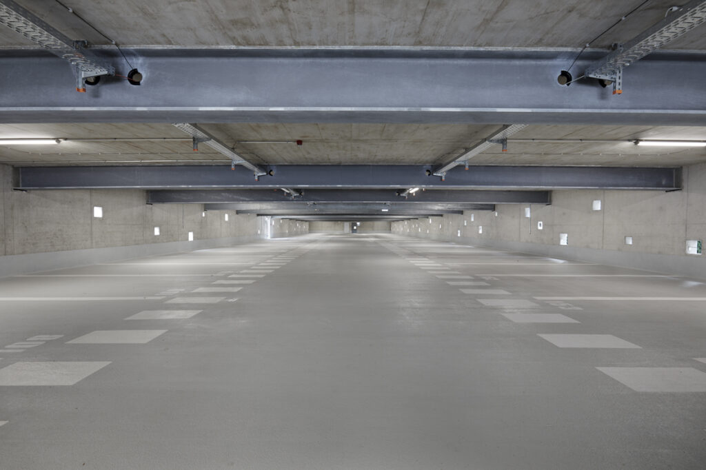 Das neue Parkhaus des „Zentrum Bayern Familie und Soziales“ in Nürnberg ist fertig: Klare Kubatur und ohne zusätzliche Rampe.