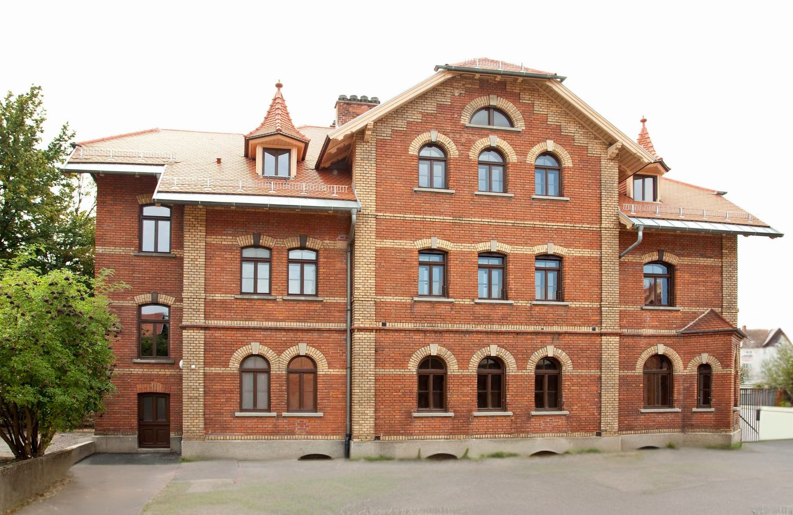 Die denkmalgeschützte Schlachthofvilla wurde 1897 bis 1898 vom Stadtbaumeister Markorn erbaut und ist im Wesentlichen im Originalzustand erhalten. Das 2-geschossige Gebäude mit ausgebautem Dachgeschoss weist Abmessungen von ca. 13 m x 21 m auf und ist voll unterkellert. Bei dem Gebäude handelt es sich um einen historischen Massivbau aus den Jahren 1897/98. Das historische Sichtziegelgebäude ist typisch für vergleichbare Bauten aus der Jahrhundertwende. Der historische Dachstuhl mit dem 35° geneigten Hauptdach mit Biberschwanz-Ziegeldeckung musste in allen Details überarbeitet bzw. erneuert werden. Auffallend sind die mit Türmchen verzierten Dachgauben sowie die mächtigen mittigen und abgwalmten Zwerchgiebel, die eine gute Nutzung des Dachgeschosses gewährleisten. Die Fenster konnten zum größten Teil im Original erhalten werden, Einzelteile mussten erneuert, insbesondere die Beschläge ergänzt und die Holzrolladen neu integriert werden. Besonderes Augenmerk war auf die behutsame Sanierung und Restaurierung des gesamten Treppenhauses zu richten. Durch die kostengünstige Sanierung konnte ein besonders schönes Exemplar damaliger Gewerbebauten langfristig erhalten und einer neuen Nutzung zugeführt werden.