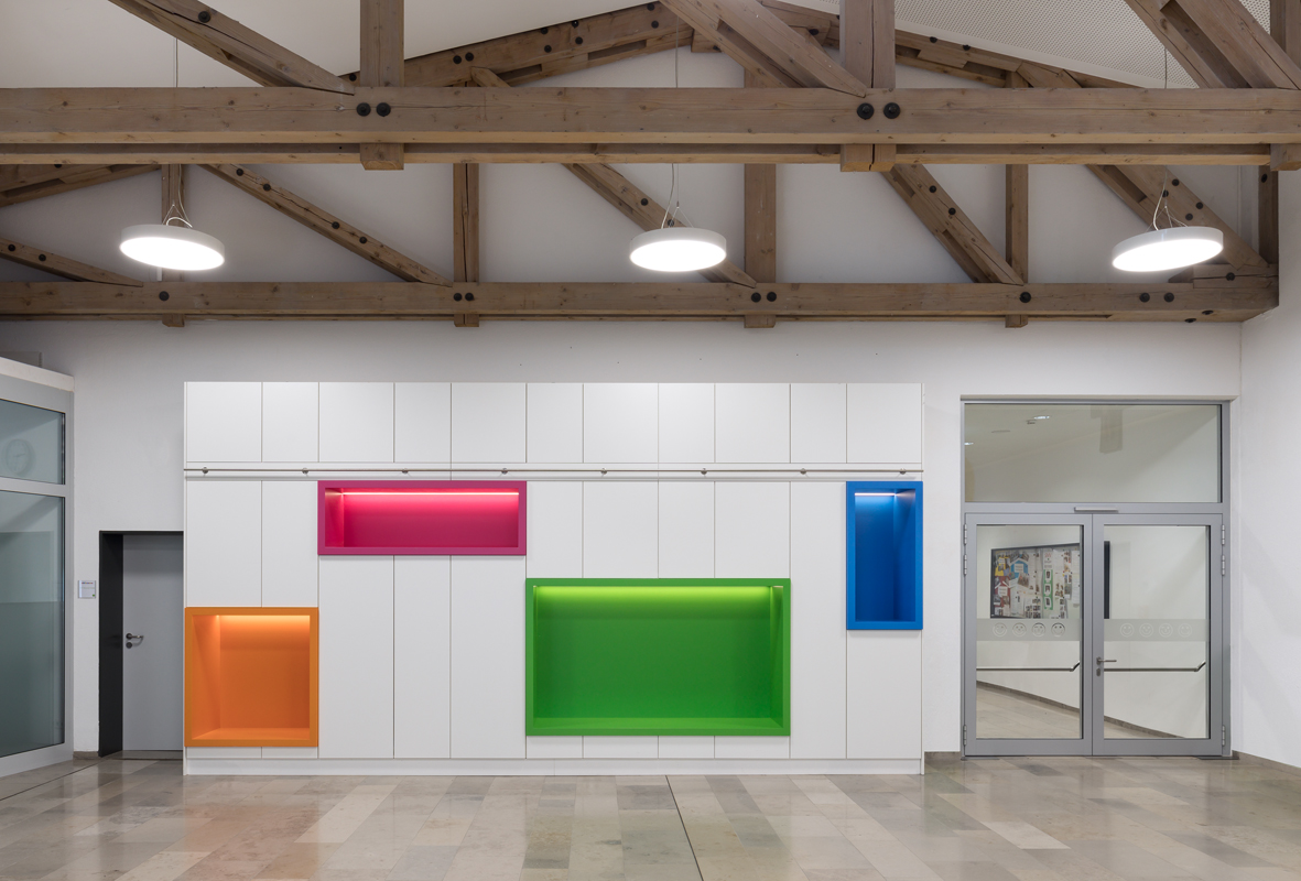 In einem 1. Bauabschnitt wurde die gesamte Gebäudehülle energetisch saniert, Fenster und Gebäudehülle wurden nach ENEV 2016 erneuert. Im Gebäudeinneren wurden bis auf kleinere Anpassungs- und Umbauarbeiten keine Eingriffe vorgenommen.