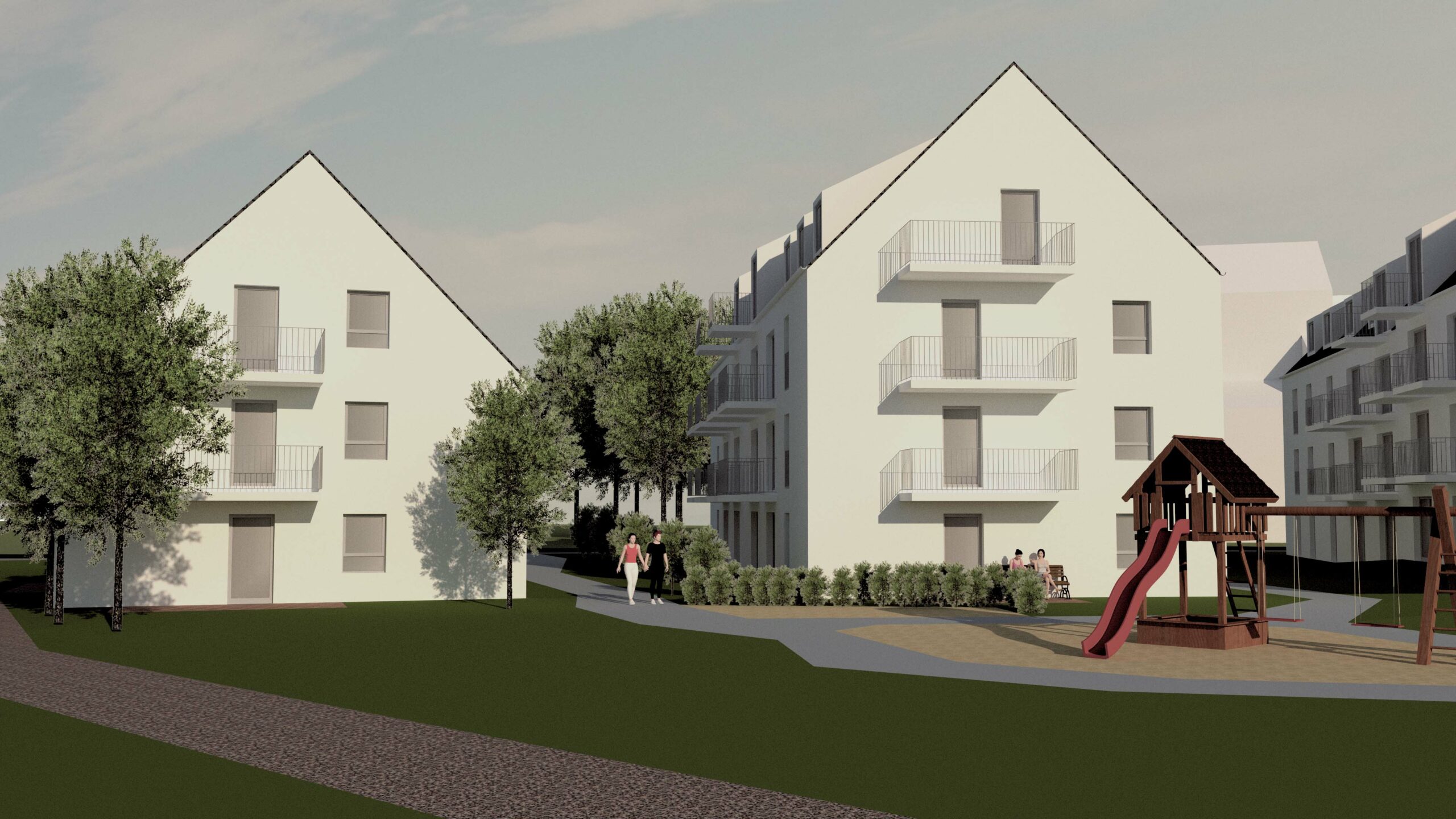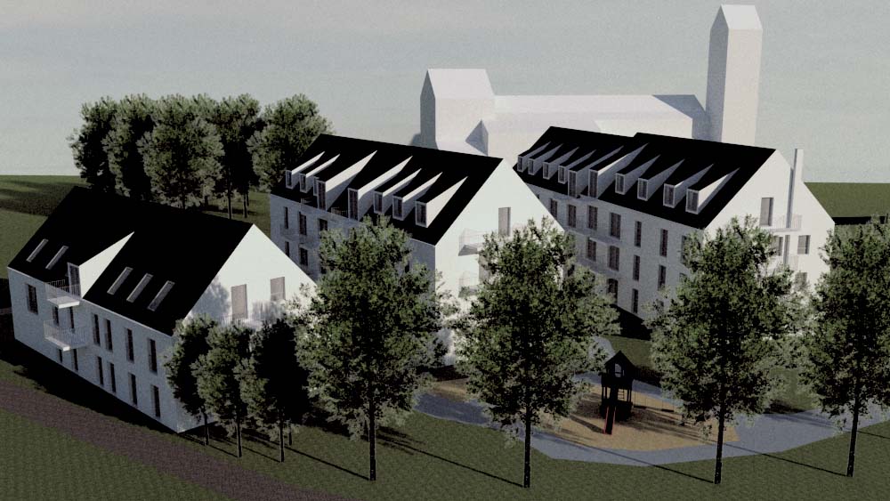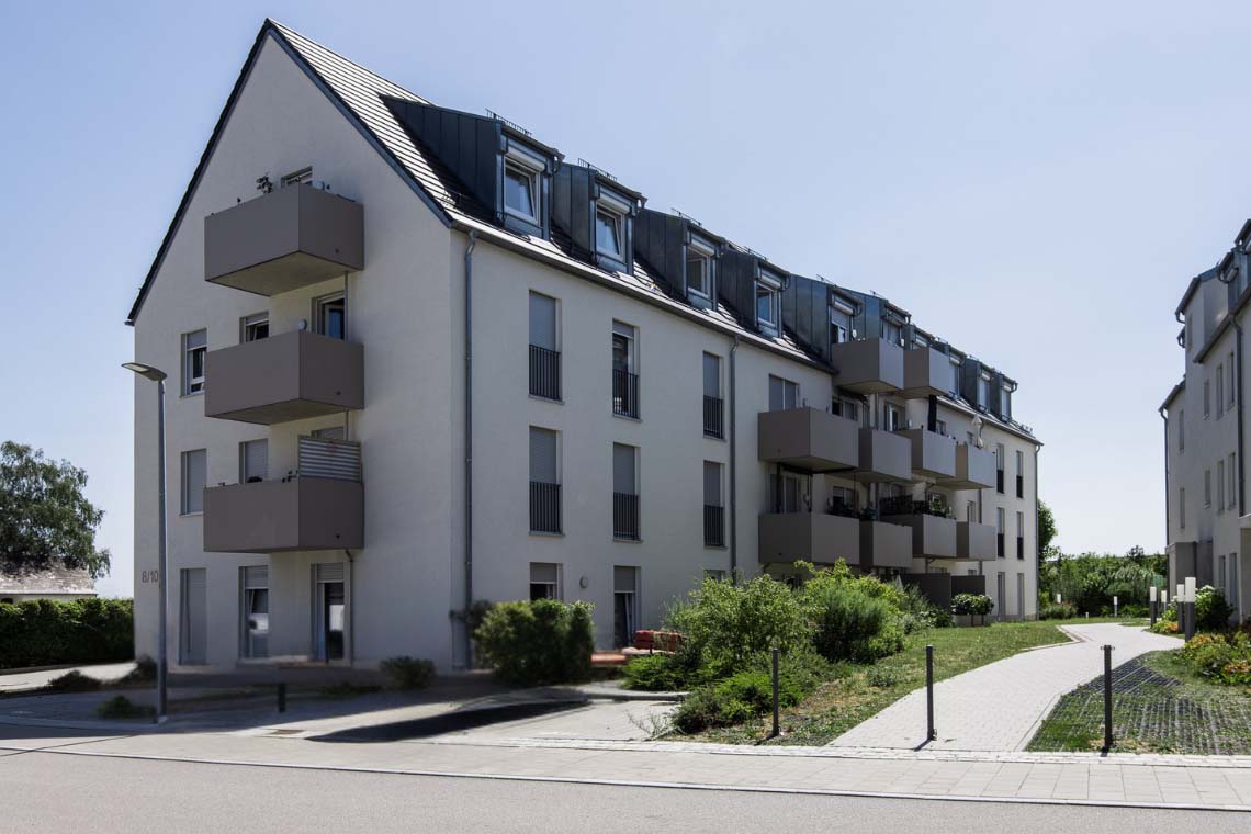 Die Wohnanlage der Baugenossenschaft Wohnbau St. Wolfgang entsteht als Neubau in Ziegetsdorf in der Wolframstraße. Sie besteht aus drei Mehrfamilienhäusern, die 3- bzw. 4-geschossig ausgeführt werden und mit einer gemeinsamen Tiefgarage verbunden sind. Weitere Stellplätze sowie auch eine Ladestation für E-Autos sind entlang der Wolframstraße geplant. Im südlichen Freigelände entsteht ein großzügiger Kinderspielplatz. Insgesamt werden 53 Wohnungen erstellt, davon 11 Wohnungen als geförderte EOF-Wohnungen und 12 Wohnungen sind als seniorengerechte Wohnungen ausgestattet. Diese 23 Wohneinheiten werden nach DIN 18040 barrierefrei errichtet. Die Wohneinheiten werden über je ein Treppenhaus mit Aufzugsanlage vom Keller / Tiefgarage bis zum Dachgeschoss erschlossen. Sämtliche Wohnungen verfügen über einen Freibereich in Form von Terrasse oder Balkon. Die drei Häuser werden in Massivbauweise geplant, die Gebäudehülle ist mit mineralischem Wärmedämmverbundsystem und die Fensterflächen mit hochwertigem Schallschutz vorgesehen.
