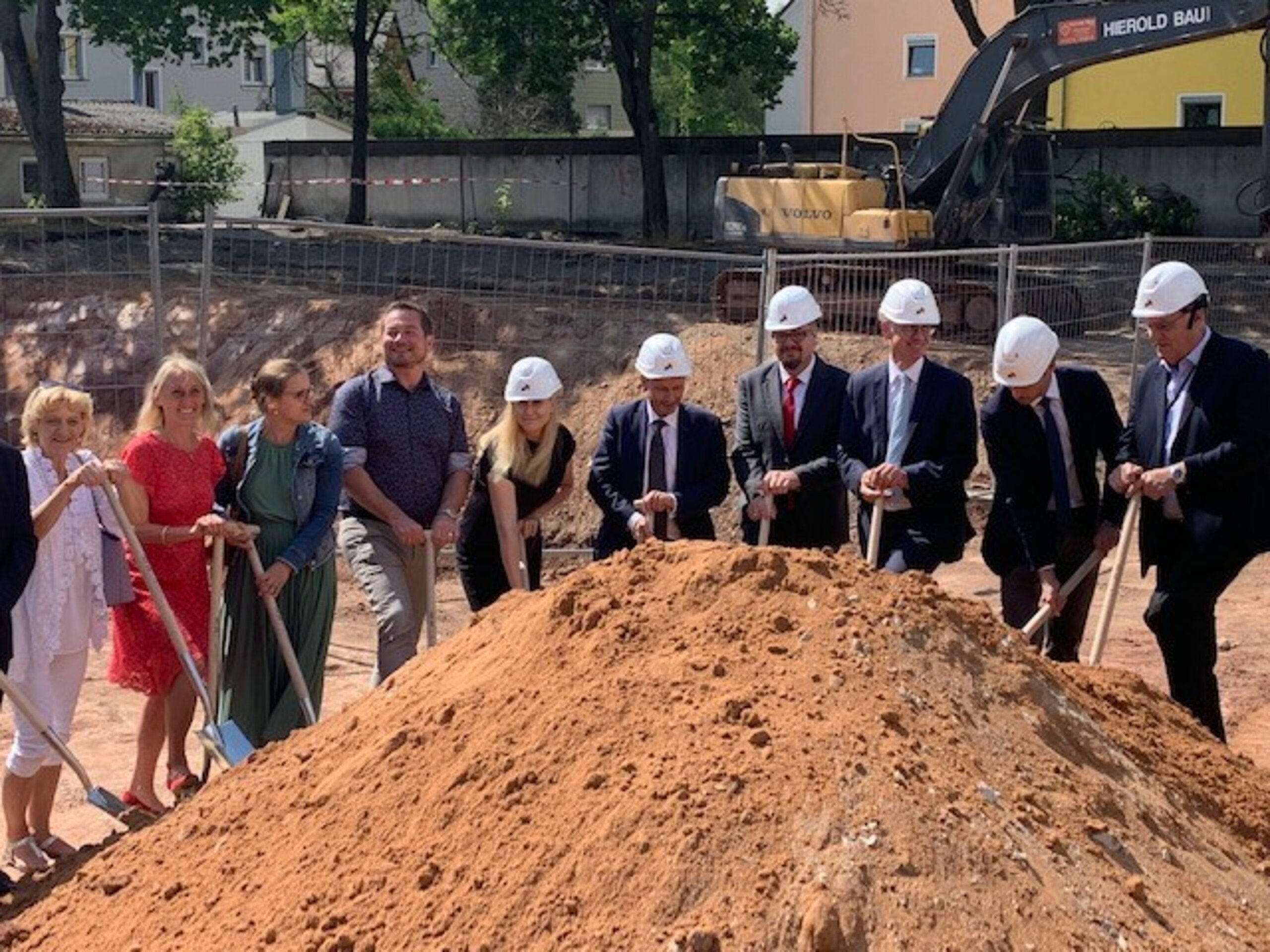 Mit dem Spatenstich zur Generalsanierung der Pestalozzi-Schule in Weiden startet das große Bauprojekt zur Sanierung und Erweiterung der Mittelschule.